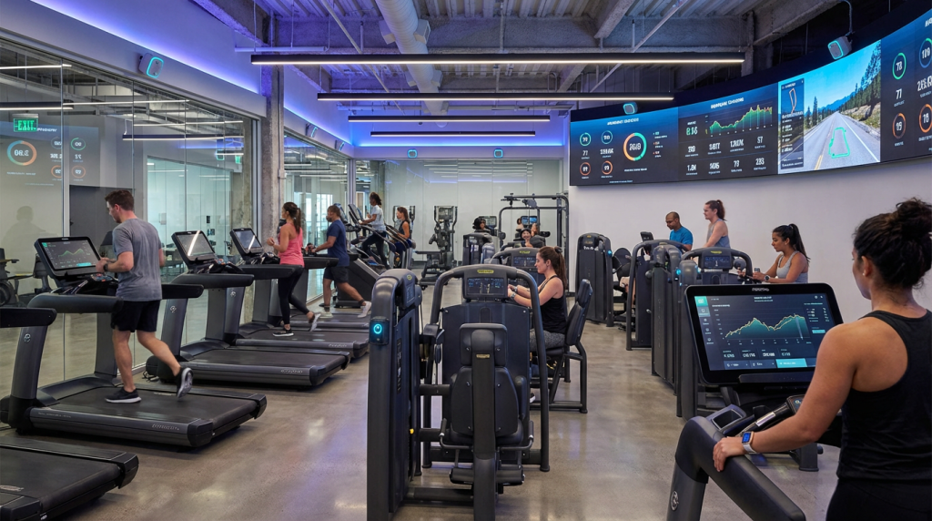 Imagine uma academia onde cada esteira, bicicleta e estação de musculação conversa com o aluno, registrando seu progresso, ajustando a